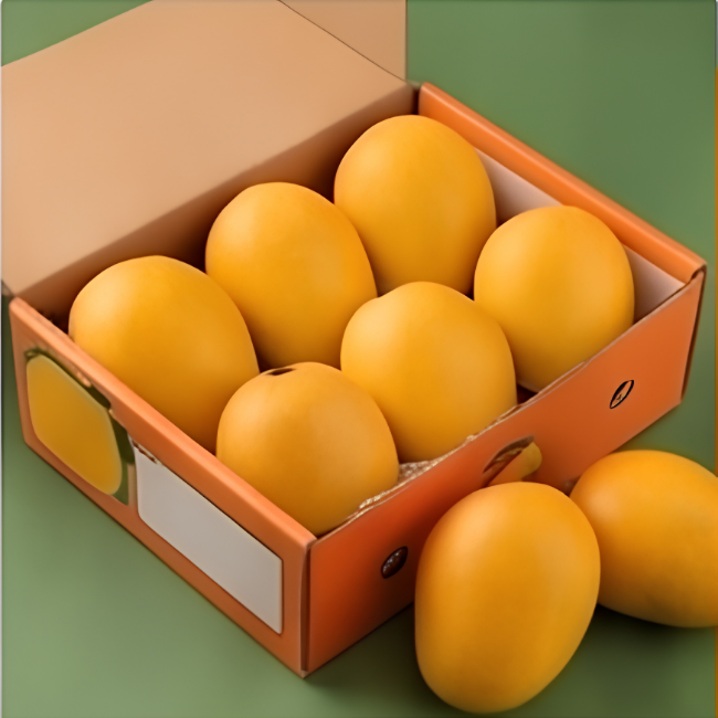 Fruits are securely packed in ventilated export boxes to prevent any damage during transit.